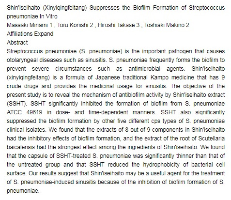 한약이 연쇄상구균의 생물막형성을 억제하기 때문에 축농증 치료에 유용할 수 있습니다.
